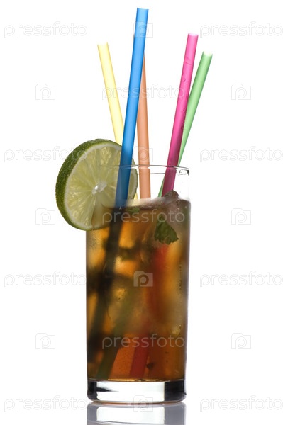 Объект на белом - стакан коктейля с соломинками