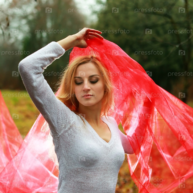 Молодая женщина с красным платком на открытом воздухе