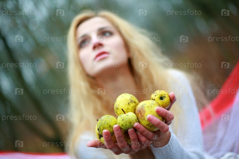 Молодая девушка с яблоками