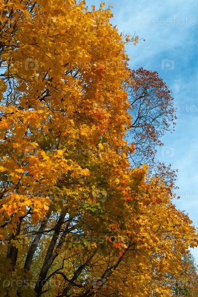 Ветви клена с желтыми листьями