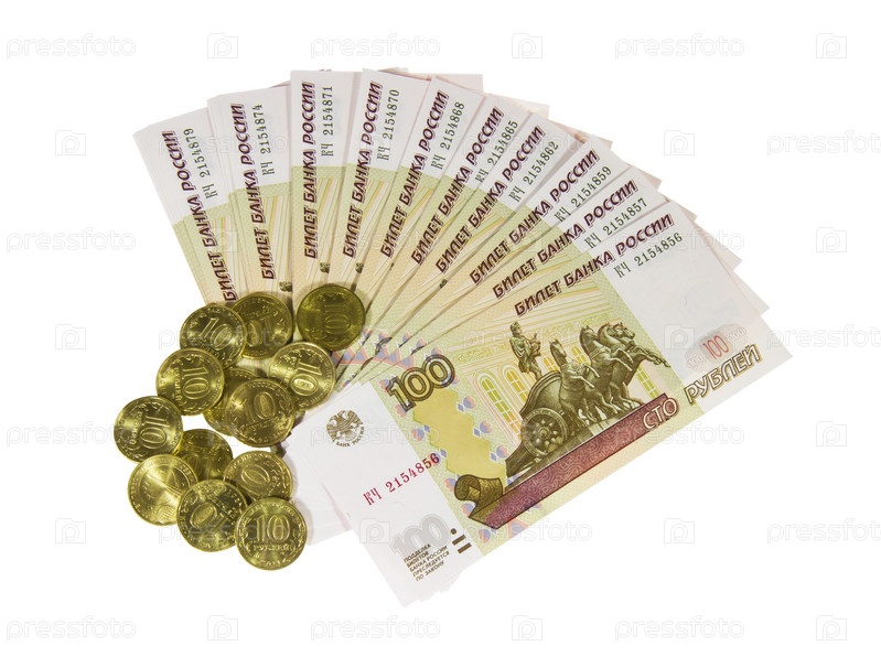 Российские деньги на белом фоне