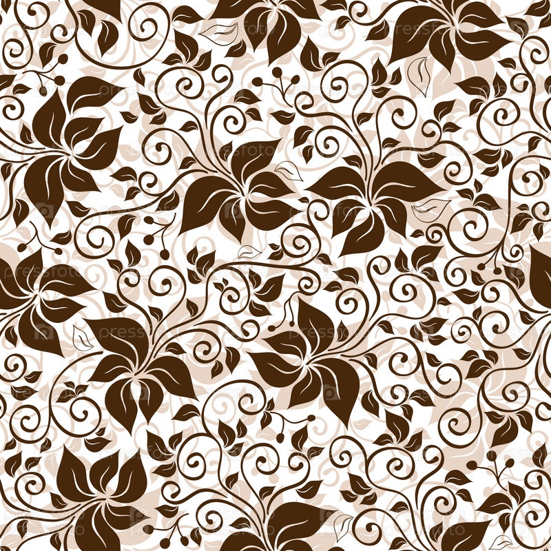 Белый и коричневый бесшовный шаблон с цветами и завитками. векторный файл eps 10)