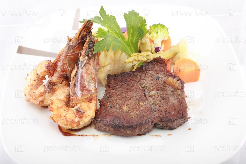 Бифштекс с креветками джамбо
