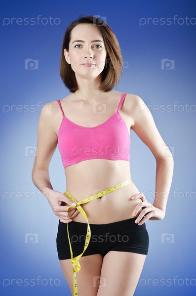 Молодая женщина измеряет талию