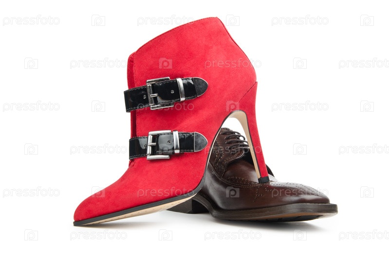 Мужские и женские туфли на белом фоне