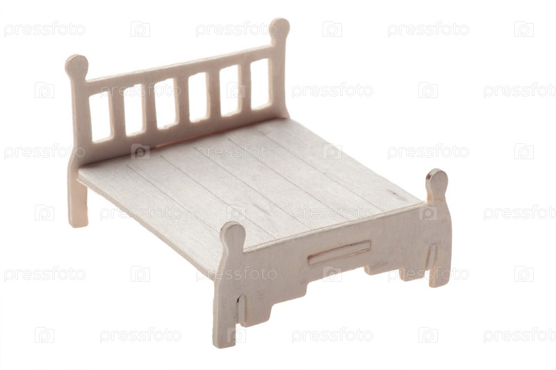 Объект изолирован на белом фоне Деревянная кровать игрушка