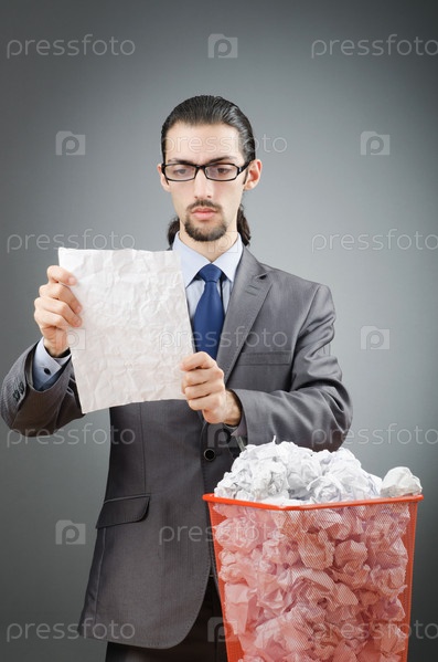 Деловой человек нашел нужный лист бумаги в мусоре