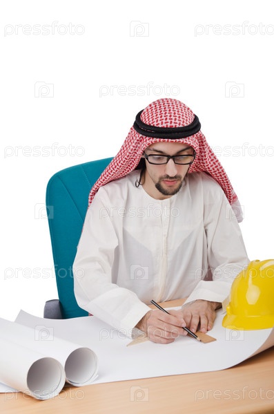 Молодой арабский архитектор, изолированный на белом фоне