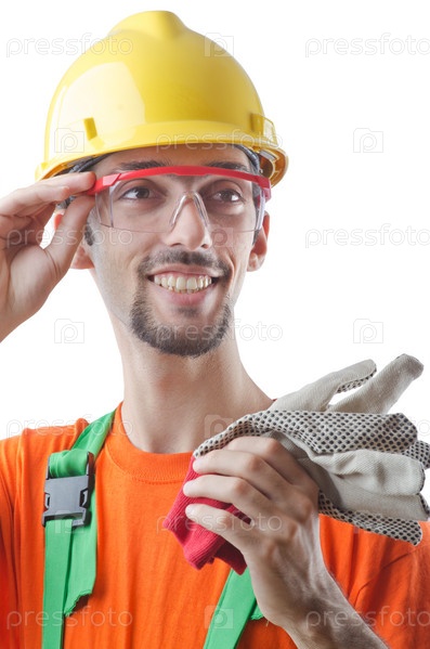 Строитель, изолированный на белом фоне
