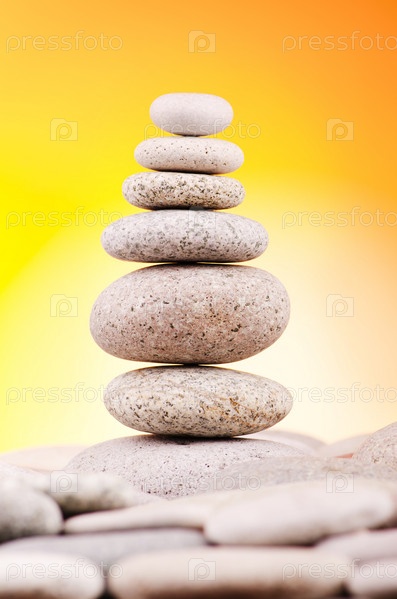 Сбалансированная стопка гальки на цветном фоне