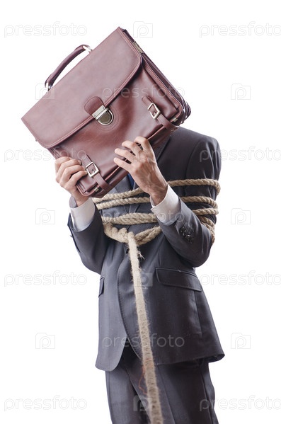 Бизнесмен, связанный веревкой