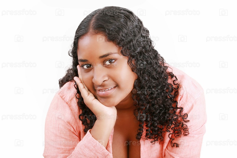 Улыбающаяся темнокожая девушка на белом фоне