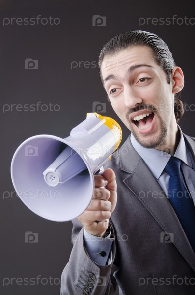 Молодой человек с громкоговорителем