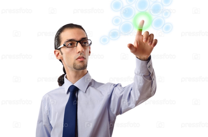 Бизнесмен нажимает виртуальные кнопки