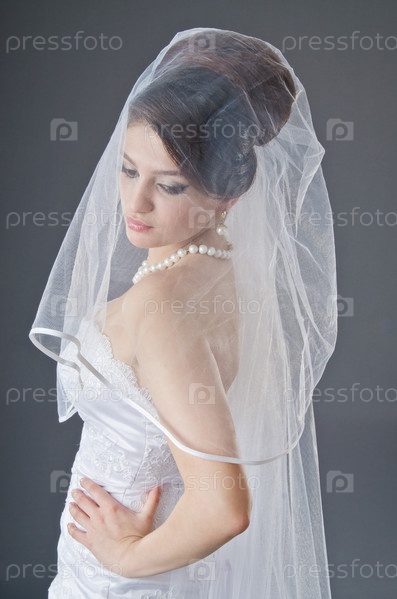 Невеста в свадебном платье в студии