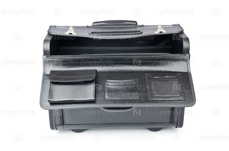 Черный портфель, изолированный на белом фоне
