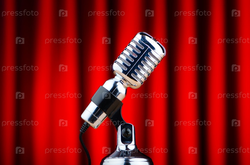 Микрофон на фоне занавеса