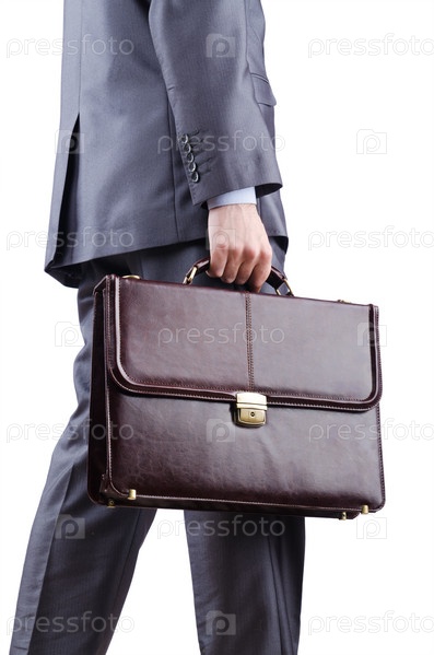 Предприниматель с портфелем на белом фоне