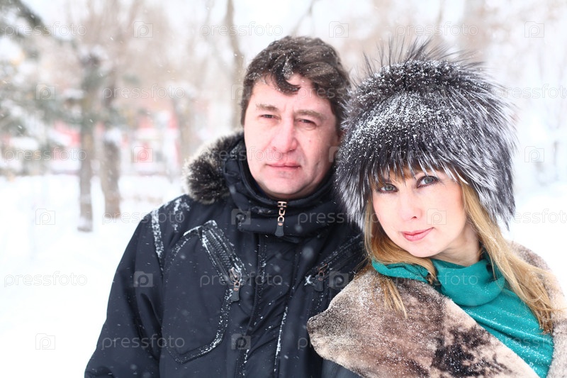 Пара на прогулке в зимнем парке