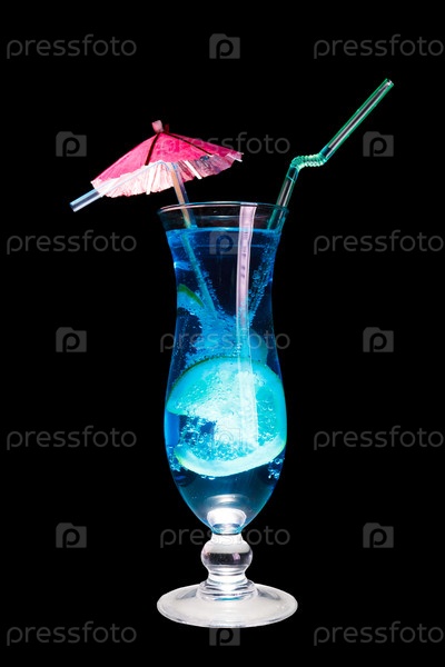 Коктейль голубая лагуна, изолированный на черном фоне