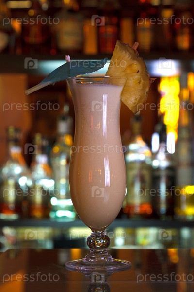 Коктейль пина колада на барной стойке