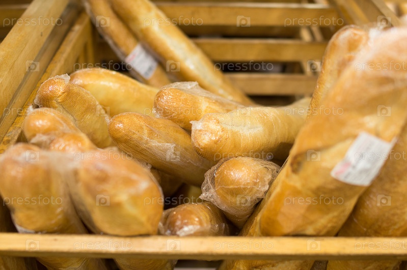 Батоны на полке в супермаркете