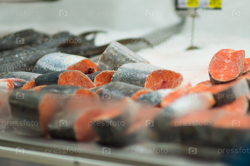 Куски свежей рыбы в супермаркете