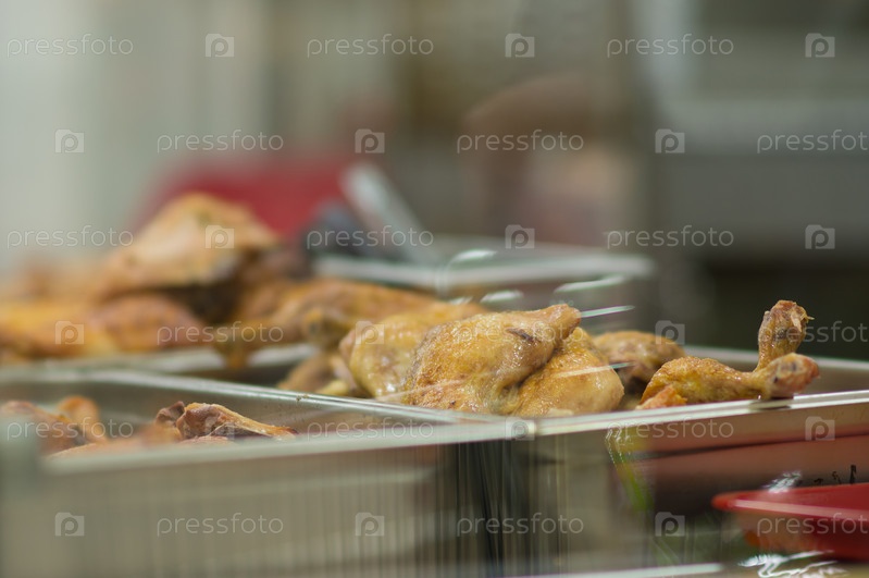 Жареные куриные крылышки в супермаркете