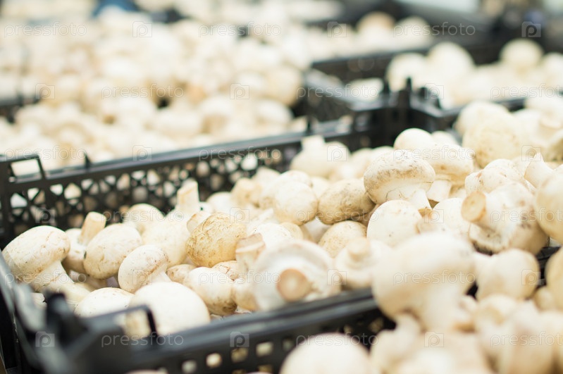 Белые грибы в ящиках в супермаркете
