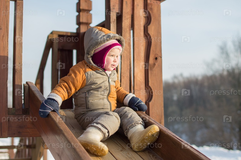 Девочка скатывается с горки