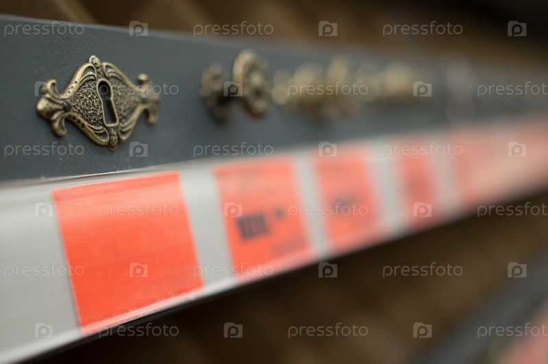 Замочные скважины и дверные ручки на полке в супермаркете