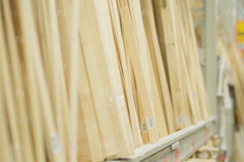 Деревянные доски на полке в супермаркете