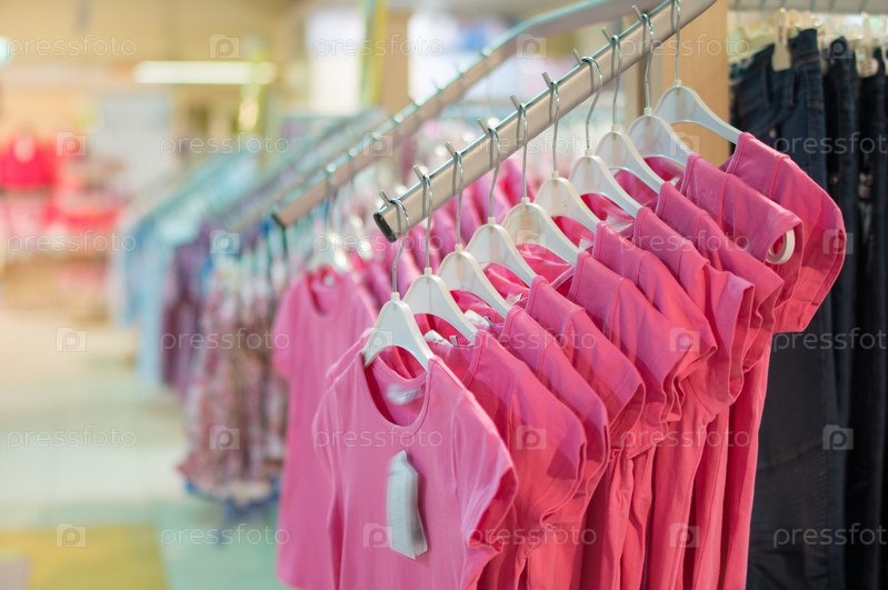 Стенды с одеждой в супермаркете