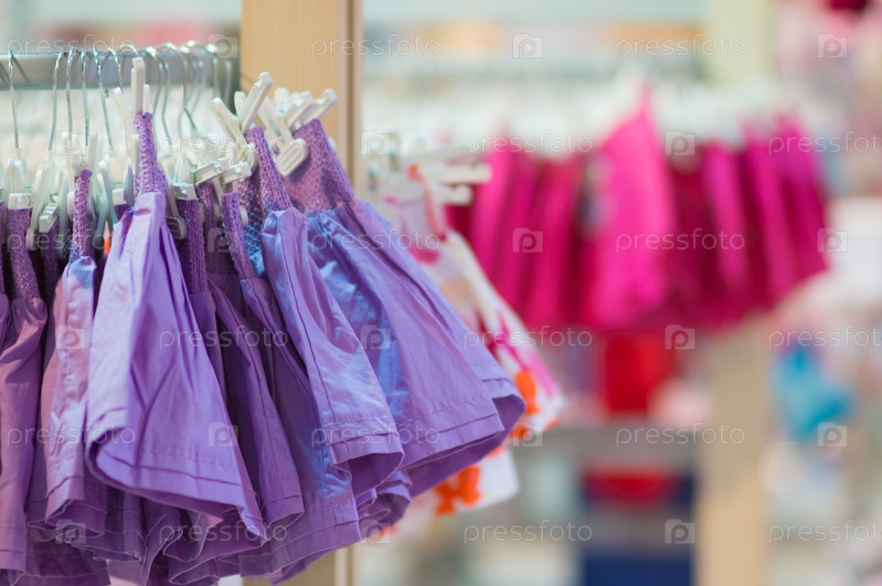 Стенды с детской одеждой в супермаркете