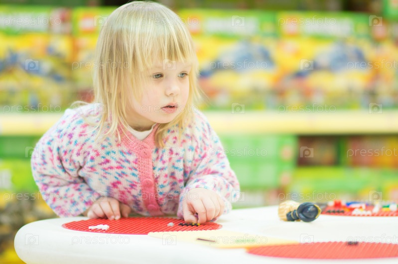 Девочка играет в детской комнате в супермаркете