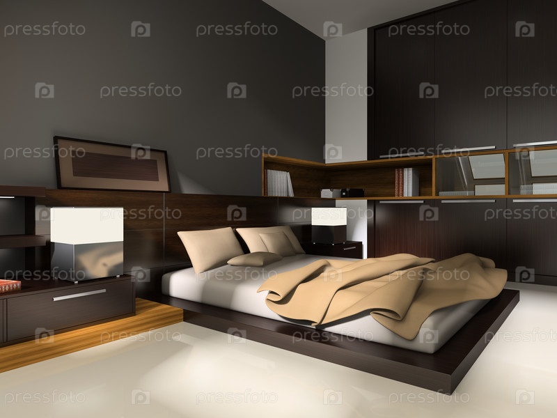 Современный интерьер в спальнях с кроватью