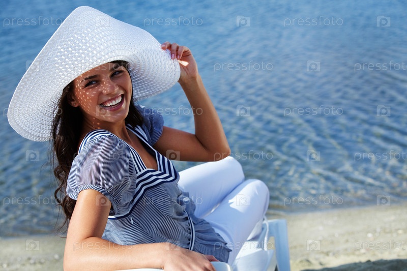 Девушка в шляпе на берегу моря