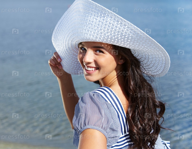 Девушка в шляпе на берегу моря