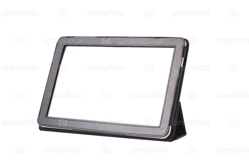 Планшетный компьютер в чехле, изолирован на белом фоне