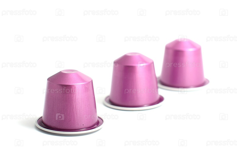Фиолетовые кофейные капсулы, изолированы на белом фоне
