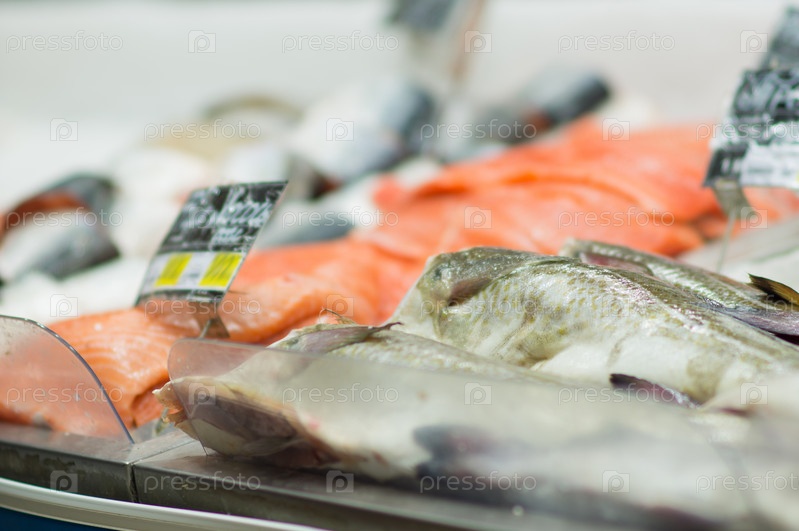 Рыбные полуфабрикаты на прилавке в магазине
