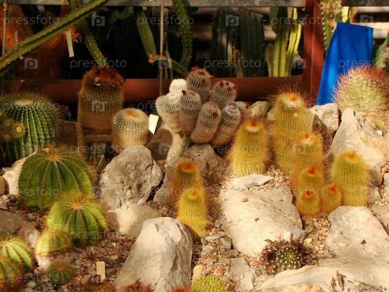 Разные виды кактусов на каменистой почве