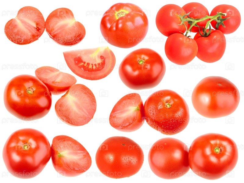 Красные свежие помидоры, изолировано на белом фоне, набор