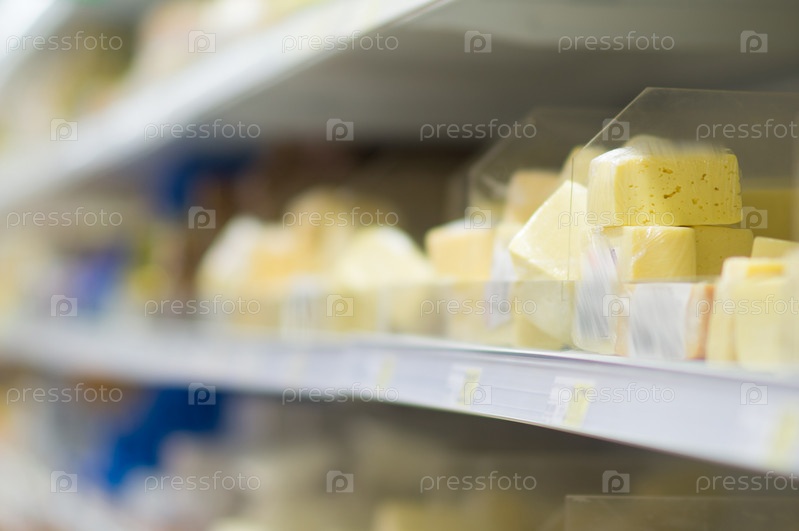 Разнообразные куски сыра в супермаркете