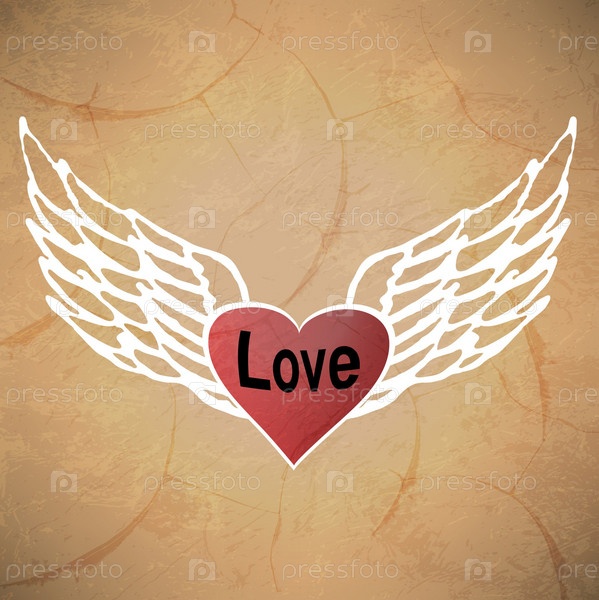 Векторная иллюстрация с красным сердцем и крыльями ангела на День Св. Валентина