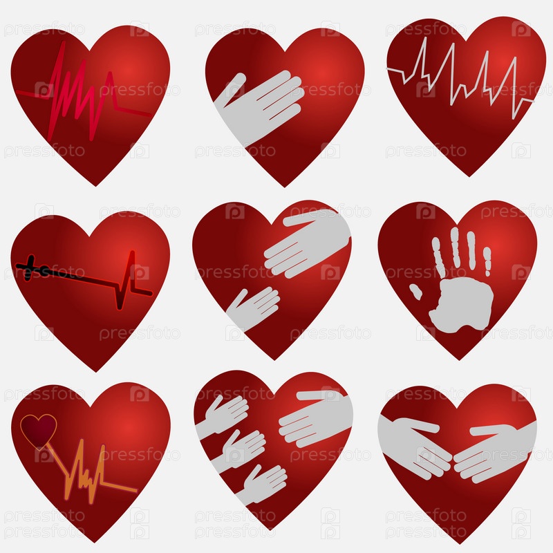 Человеческие руки, спасающие сердце. Набор значков