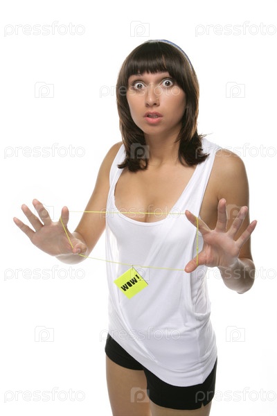 Девушка в майке на белом фоне