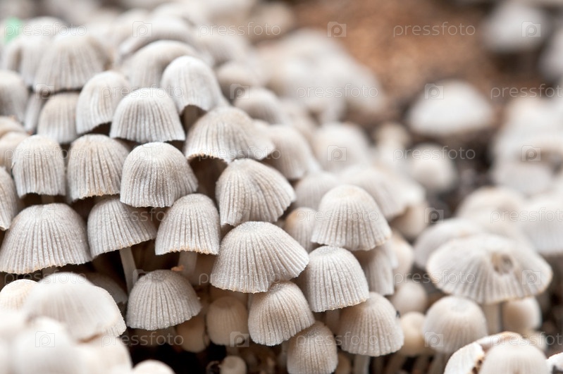 Колония мелких грибов возле дерева