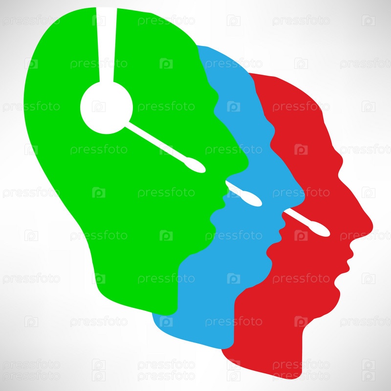 Три силуэта голов в профиль с гарнитурой на сером фоне