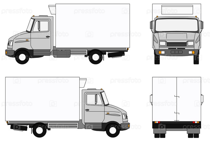Серый грузовик, вид с четырех сторон